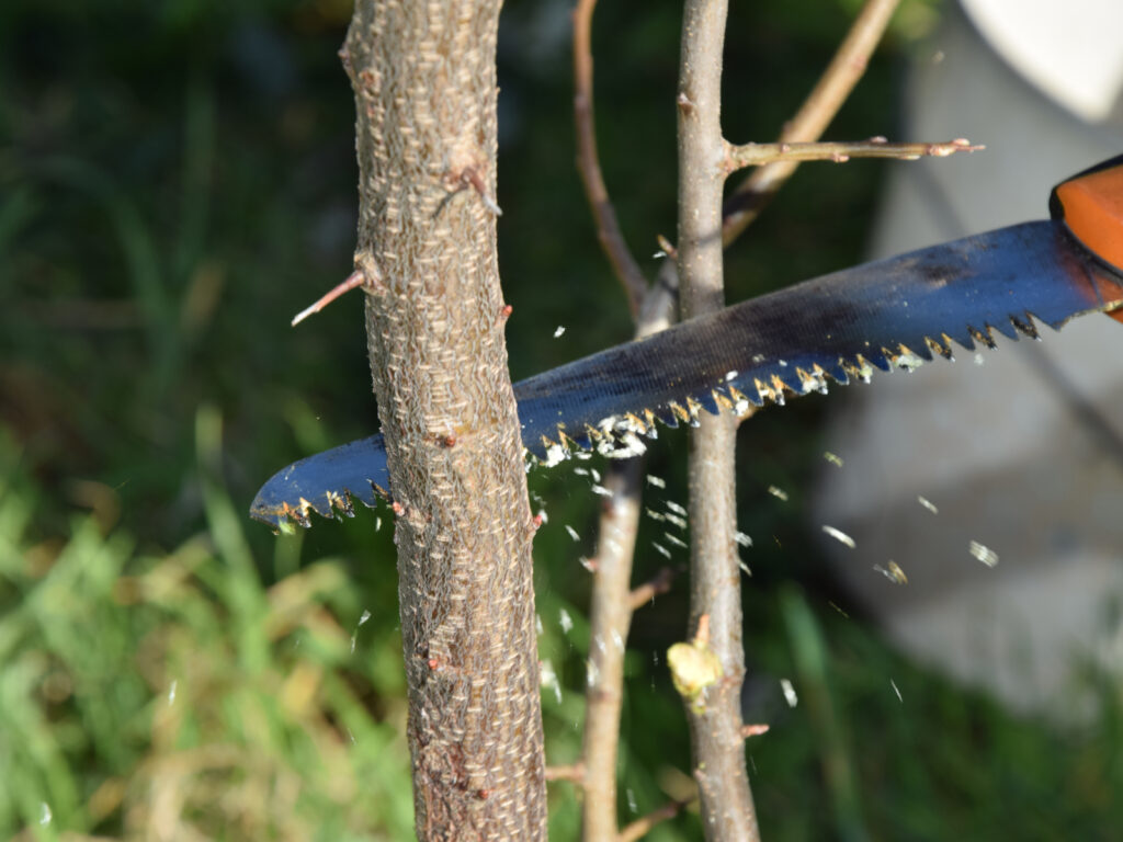 Je vais commencer par greffer la plus grosse branche, avec deux greffons.