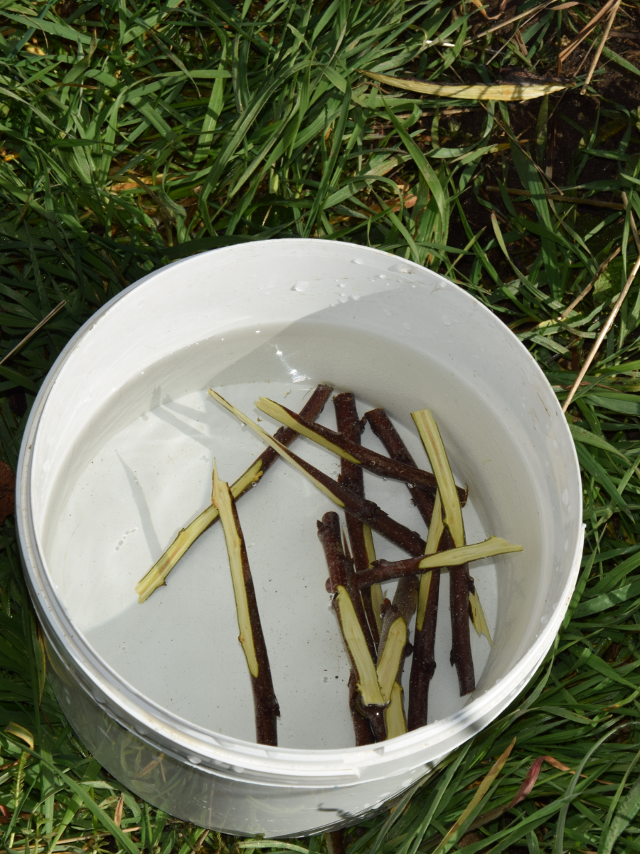 Puis les greffons sont mis dans l’eau, où ils seront très bien conservés durant quelques heures (en pratique, pas plus d’une demi-journée).