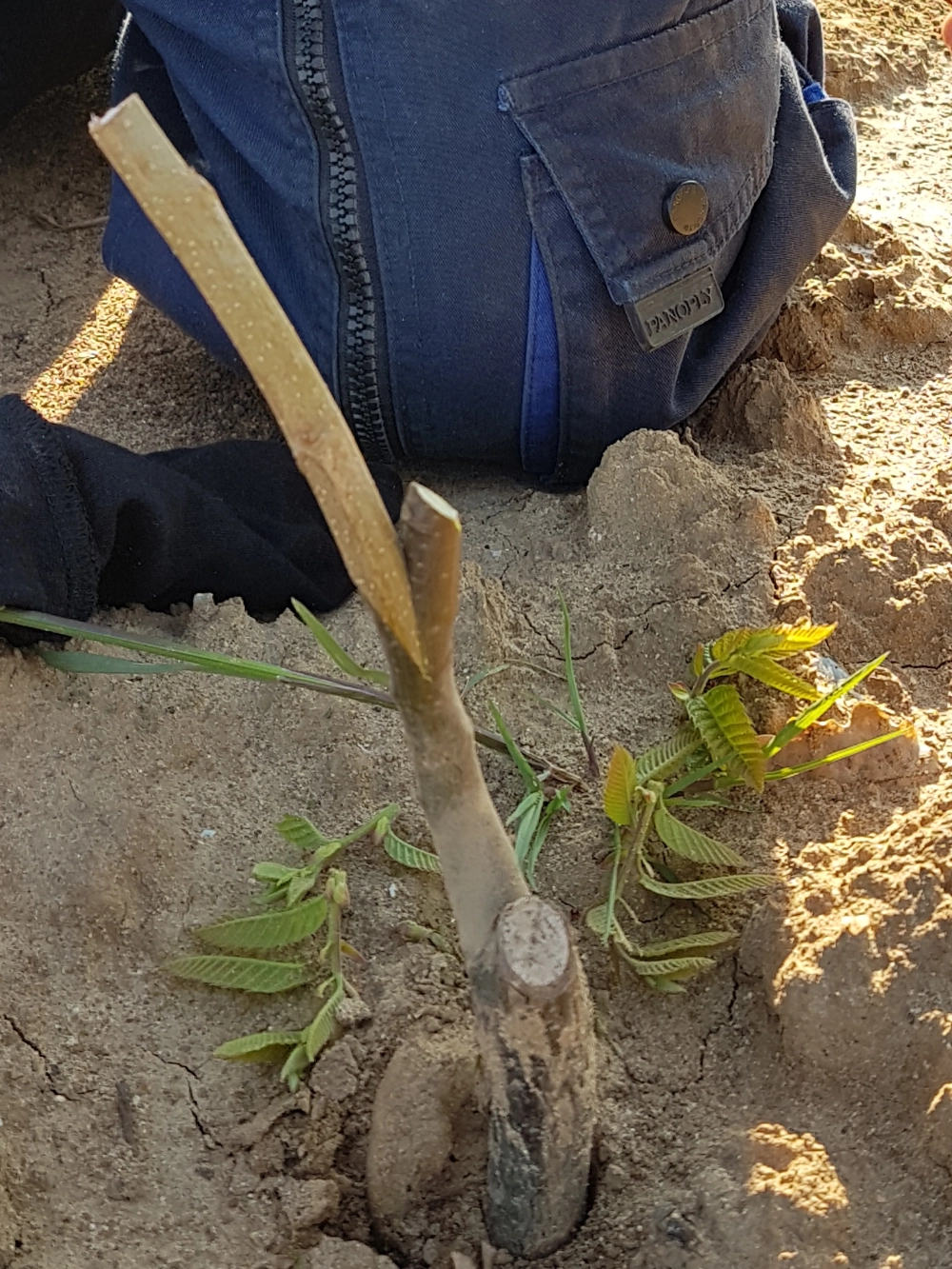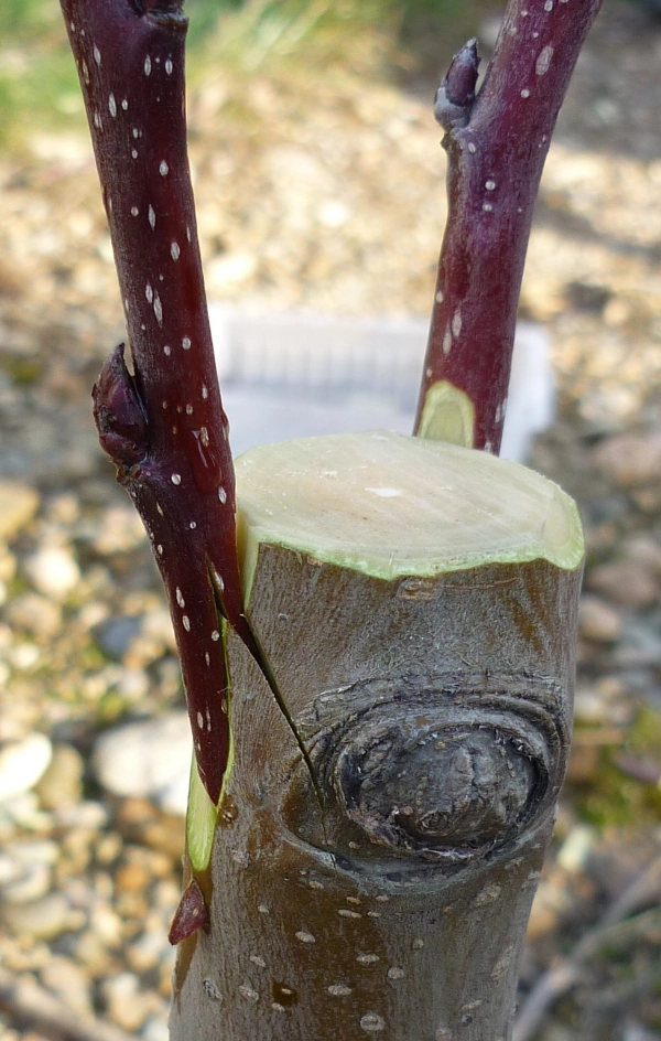 Puis inséré sur un gourmand de même diamètre du porte-greffe (ce qui vient d’être fait sur cette photo).